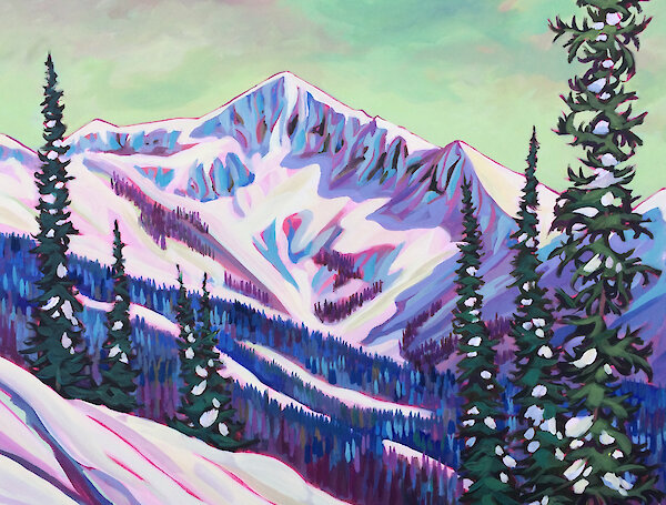 Abby's paintings capture her love of the mountains with bright, bold acrylic landscapes. Her work explores how geometry aligns with natural geology, pushing on shape and line to stylize the world.